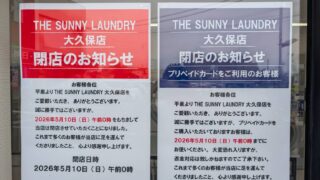 熊取大久保にあるコインランドリー「THE SUNNY LAUNDRY大久保店」が、2026年5月10日(日)午前0時をもって閉店する。メガネワールドの隣、キリン堂が近くにある場所で、年中無休・朝6時から深夜24時まで営業してきた店舗だ。プリ...